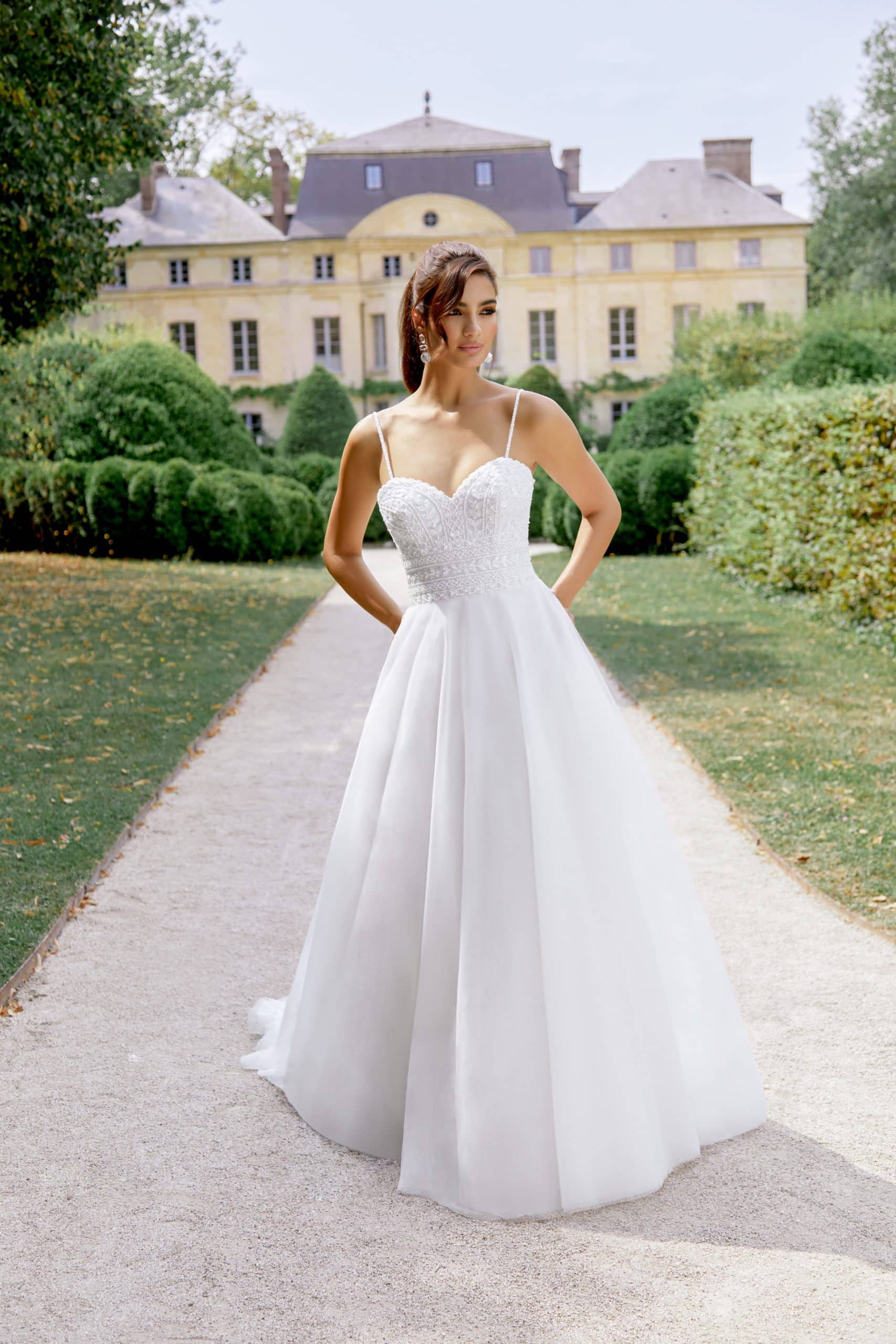 Accueil > Univers Femme > Robes de collection > DONATA – Justin Alexander Robe de mariée DONATA par Justin Alexander La Maison de Couture vous propose de très nombreuses robes de mariée du style glamour, bohème, princesse, … à découvrir et à essayer à la boutique à Nancy. Accessoires CréAnne Je découvre les accessoires & chaussures Chaussures Chaussures Barcelets
